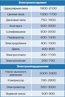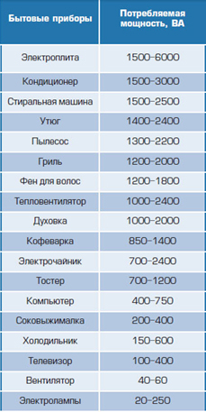 Таблица мощностей бытовых приборов